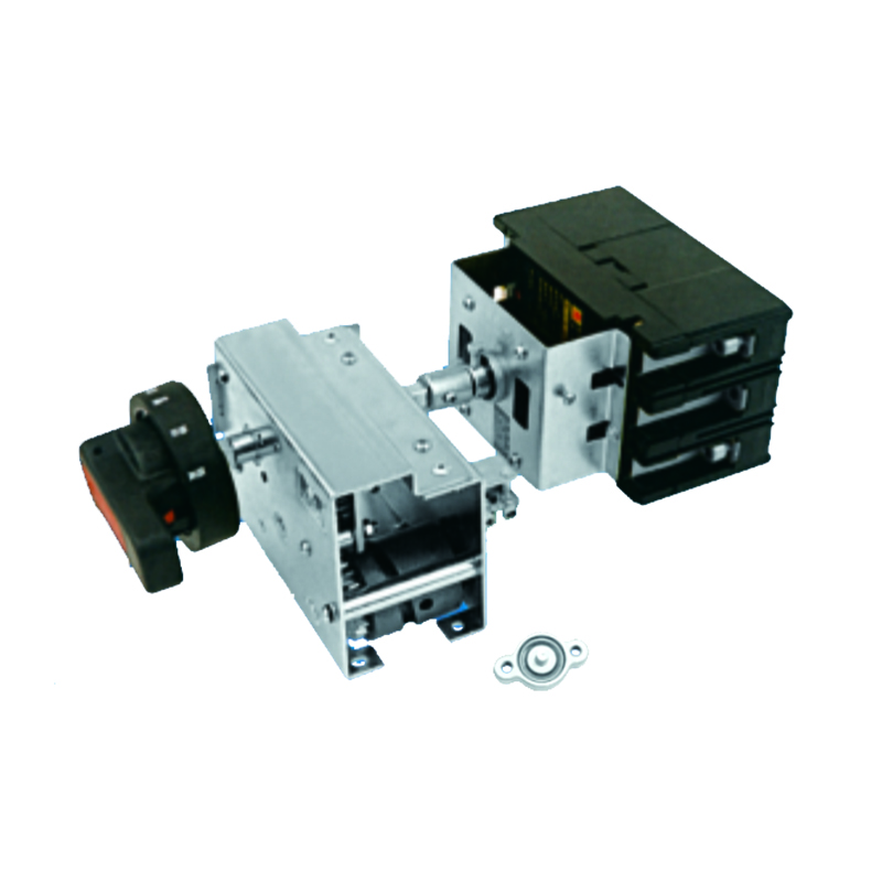 By rotating the operating handle mounted on the drawer panel within a 360° range, the switching (on/off), testing, isolation, and locking positions can be achieved. The engagement and disengagement of the drawer are realized through the transmission between gears and cams.