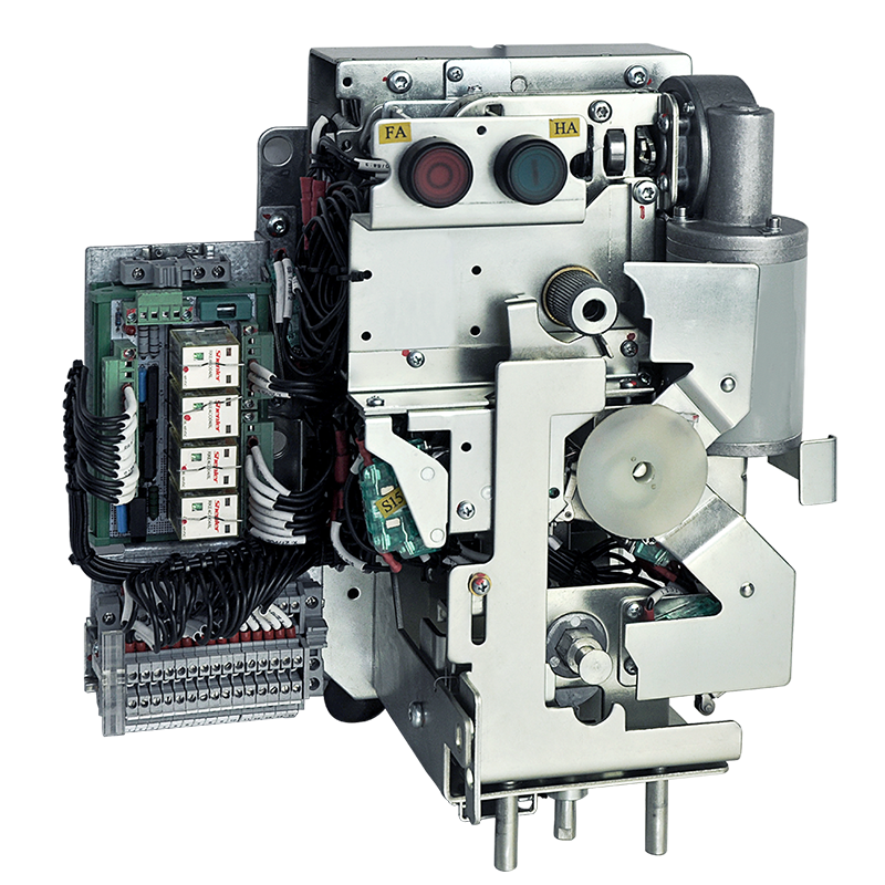 XGN-12D equipped with SPE type spring operating mechanism is accessory equipment for 12kV AC metal-enclosed switchgear. This series of mechanisms uses a planar spiral spring to control load switch operation, and earthing operation is controlled by a compression spring over-center mechanism. The working positions include closed, open, and earthed — mechanical interlock between closed and earthed positions prevents incorrect operation. Mechanism output angle is approx. 80°, average closing and opening speed ≥ 3 m/s, mechanical endurance: 5000 operations for closing, 3000 for earthing. The mechanism features a compact design, easy installation and operation, and strong adaptability.